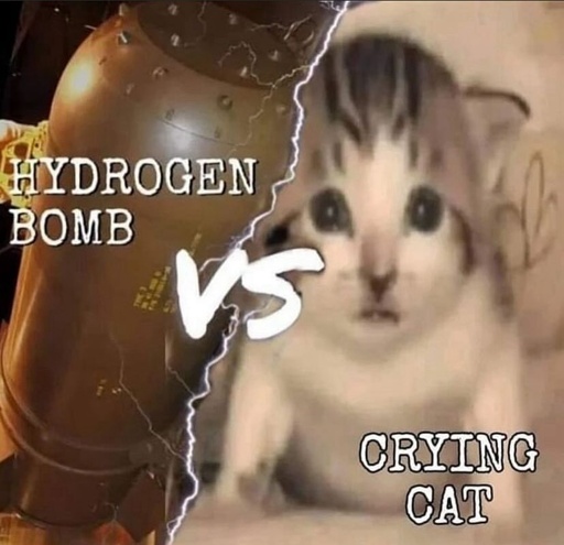 minus-squaremaria [she/her]@lemmy.blahaj.zonelinkfedilinkarrow-up1·10 months agoBomb goes poof before bomb, so clearly crying cat.