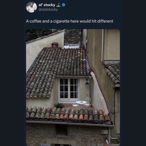 I’m a big dumb American, we don’t have buildings like this, but every time I go for a coffee and a smoke, I wish it was in a nice little cozy spot like that.